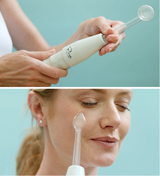 High frequency technology delivers gentle electrical currents through glass wands to increase oxygenation, boost circulation, and help eliminate acne-causing bacteria on the skin’s surface.